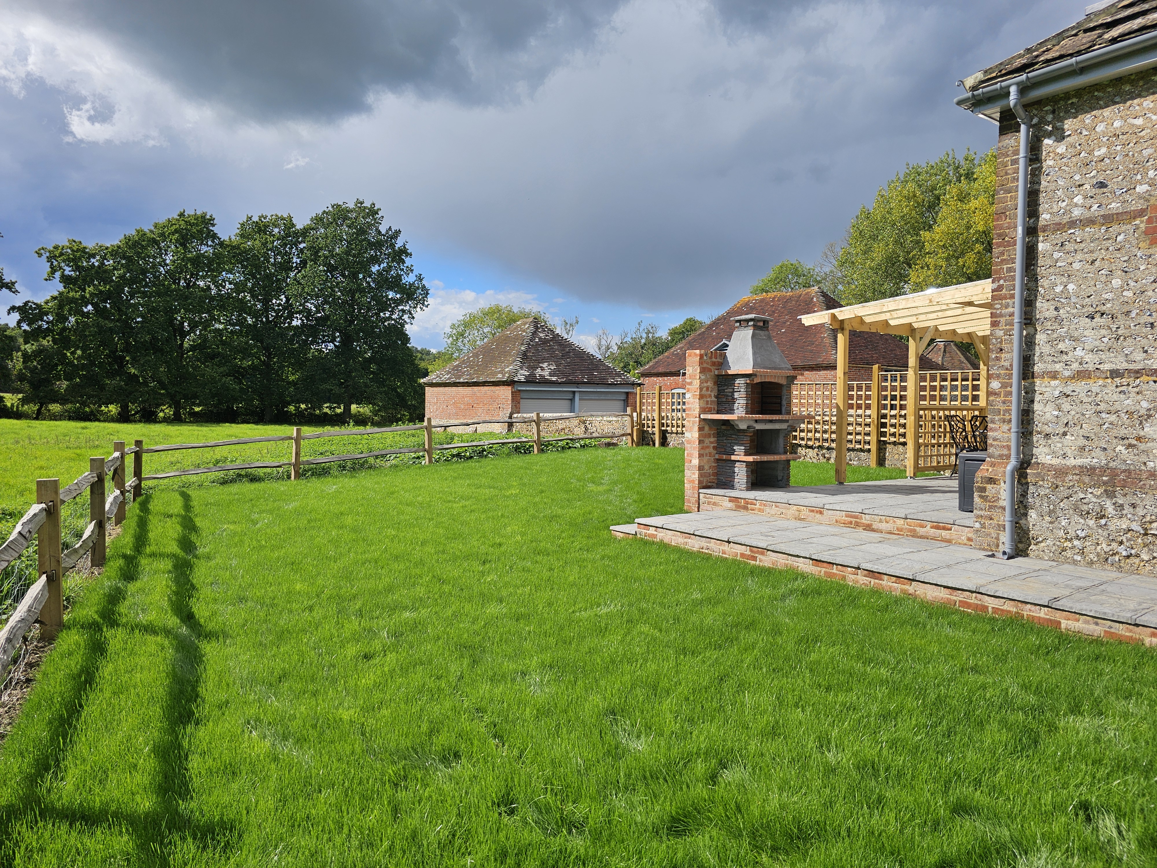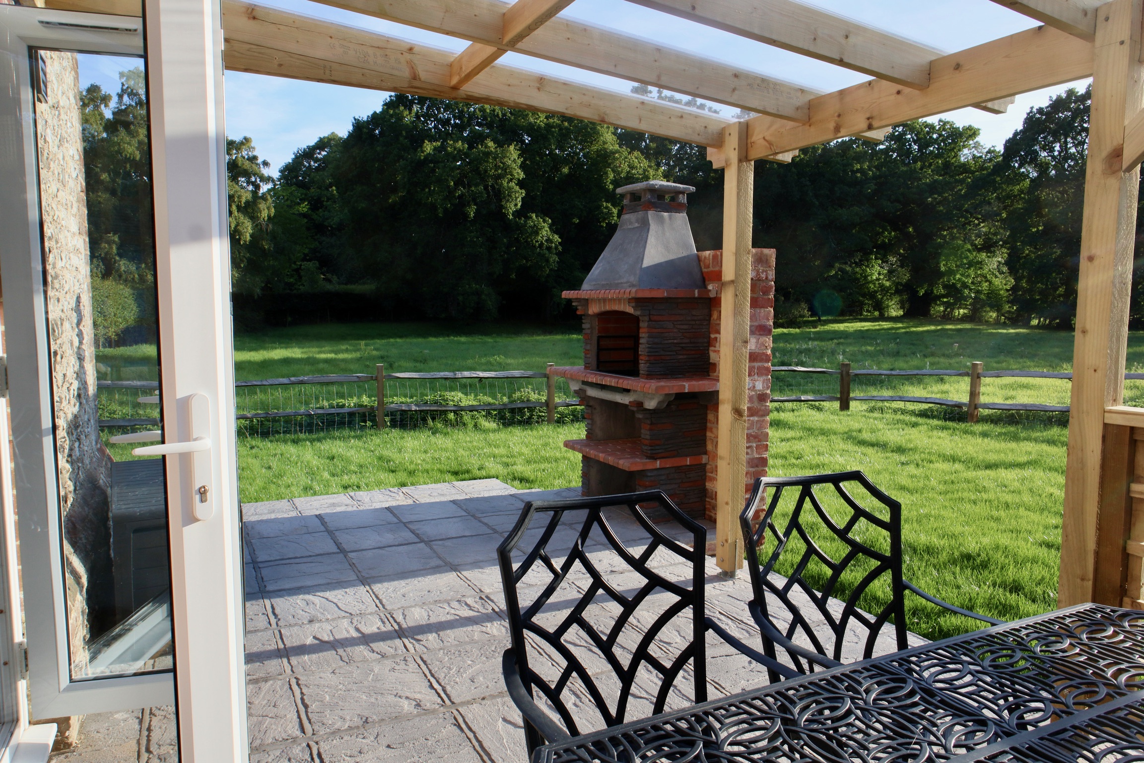 The fenced garden with views of the adjoining field